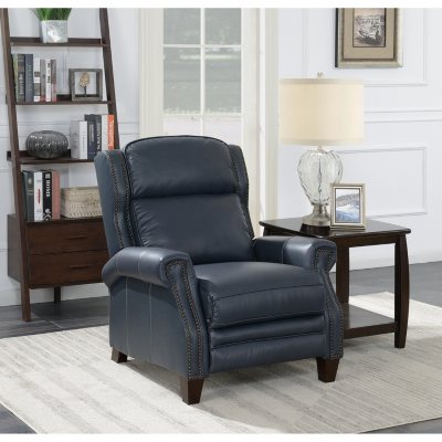 Https Www Samsclub Com P Oliver Top Grain Leather Pushback Recliner Navy Prod22753663